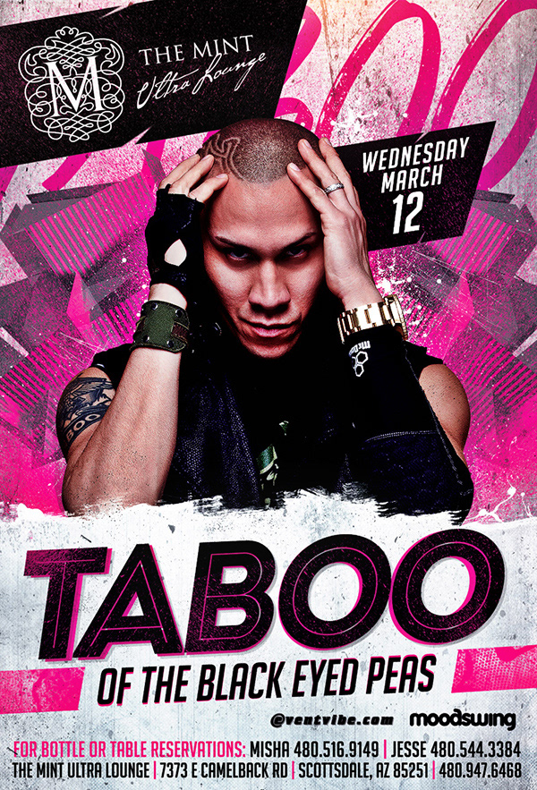 Event flyer design for Taboo, of the Black Eyed Peas, performance at The Mint